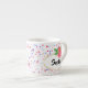 Uma maravilhosa Taça Espresso com um buquê de rosa pintado e um nome de escrita manual em uma refinada armação de ouro brilhante sobre um fundo cintilante de confete e espangas coloridos é uma compra de excelente para você mesmo ou como um belo presente.O design está pronto para personalizar: pressione "Personalizar este modelo" para editar o nome. Também é possível clicar em "para personalizar ainda mais" para abrir opções de edição de cheio para fazer design para o que você quiser que ele represente: para organizar o táxi, alterar uma fonte e uma cor de fonte e também para adicionar informações, imagens ou remover informações existentes. Com uma xícara tão adorável, a manhã parecerá mais brilhante, durante o dia será sempre hora de uma xícara de café!