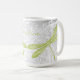 Aproveite seu café matinal com uma Lata Verde Personalizada de Café. Mug design apresenta uma libélula colorida, uma vinha branca e macia contra um fundo úmido de cinza de luz com uma área para personalizar com seu nome. Itens de presentes adicionais disponíveis com este design, bem como uma variedade de cores.