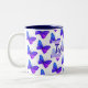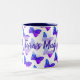 Este as borboletas roxas bonitas projetam em um copo de café podem facilmente ser personalizadas para fazer um presente original. Desenho da aguarela de um inseto bonito.