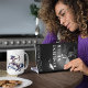 Essa caneca na moda apresenta uma brilhante representação aquosa do signo astrológico sagitário numa elegante combinação de preto, azul, roxo, ouro e marfim. Comece escolhendo seu estilo de caneca. Opte por branco clássico ou adicione um dentro de cor complementar à caneca ou na alça. O design inclui o nome do destinatário e destaca os principais traços de personalidade desse sinal. Usando a caixa Editar design à direita, você pode personalizar o nome, mudar a fonte ou adicionar uma frase ou citação favorita, de forma fácil e rápida.