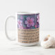 Salve sua bebida preferida em nossa caneca elegantemente projetada, com a combinação encantadora de flores coloridas de brilho e burlap natural. Este design único não só adiciona um pop de elegância vibrante à sua rotina diária, como também inclui uma seção especial para personalizar com seu nome e seu verso de Bíblia favorito. Transforme uma caneca comum em uma manutenção significativa que reflita sua fé e seu estilo pessoal. Perfeito como presente pensativo ou especial para si mesmo, esta caneca oferece um lembrete diário de força e inspiração.