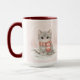 This adorable coffee mug features a cute, sitting kitten wearing a pink and white striped scarf, set against a soft, snowy winter scene. The whimsical watercolor style creates a cozy, dreamy look. It is fully personalizable; simply add a custom name to the design. This charming mug is the perfect holiday or birthday gift for cat lovers, kitten owners, and anyone who loves cute, pastel winter decor.