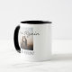 Celebrate your love story with this delightful personalized couple mug. Featuring a unique hand-drawn design of two hands with interlocked pinkies and a small red heart, this mug can be customized with your names (e.g., Anthony & Irina) and a special date (e.g., 01-01-20XX). It's a perfect engagement party gift, wedding anniversary present, or a thoughtful Valentine's Day gift for your husband, wife, boyfriend, or girlfriend.