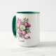 Add a personal touch to your daily coffee routine with this beautiful personalized tulip floral mug. Featuring a delicate bouquet of pink and white tulips tied with a soft ribbon, this design is customized with your name for a unique and meaningful gift.