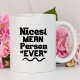 Pessoa Mais gentil Que Nunca... Esta caneca de café sarcástica e engraçada... faz um presente perfeito. A caneca é impressa com a frase "Pessoa Média Mais Bonita do Nunca" em uma fonte ousada e atraente. A caneca é feita de cerâmica de alta qualidade e é lavadora de louça e micro-ondas segura. É o presente perfeito para o amigo sarcástico, membro da família ou colega de trabalho na sua vida. Vantagens e recursos: - Disponível em caneca ou caneca de viagem cerâmica de 11 ou 15 oz - lavadora de louça e micro-ondas seguras - impressão de alta qualidade - Texto engraçado e sarcástico - Faz um presente de excelente aniversário Ordene sua caneca de café hoje e comece a aproveitar seu café matinal com um sorriso!