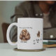 Watercolor Pet paw prints Cocker Spaniel Personalize Mug. A keepsake of your Cocker Spaniel. This Design is Created to serve Cocker Spaniel Lovers and Owners. Lovely watercolors with room in center to upload a small photo of your pet and add her/his name. Enjoy your Shopping Adventures!