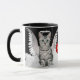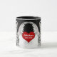 Mantenha seu gato perto do coração todos os dias, adicionando seu nome a esta caneca com um coração vermelho dizendo "Para sempre no meu coração" e apresentando um gato de mesa prateado com asas anjos adoráveis.