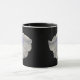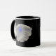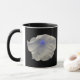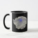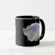 Esta caneca bonito apresenta uma fotografia de uma flor de petúnia que foi manipulada para fazer o centro da flor brilhar azul brilhante. As pétalas exteriores são brancas e as veias que saem do centro da flor também brilham a azul. A flor está sobre um fundo preto para que fique de pé. A design é mostrada em uma caneca de estilo de toque preto, mas também está disponível em muitos outros estilos e cores de canecas.