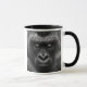 Une photo portrait en noir et blanc d'un gorille révèle une expression intense et menaçante. Le regard perçant de l'animal, avec ses yeux clairs et brillants, semble transpercer l'objectif, ajoutant une dimension presque surnaturelle à l'image. La texture de la peau du gorille et les détails de ses traits marqués ressortent magnifiquement grâce à l'éclairage subtil et aux ombres. Quelques éclats de lumière dans l'arrière-plan flouté ajoutent un effet dramatique à la scène, renforçant l'impression de puissance brute et de majesté de cet animal impressionnant. Ce portrait est un hommage à la force et à l'élégance de la faune sauvage.