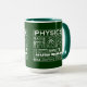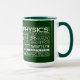 Física Mug. Com as seguintes palavras no verso - Física, Aceleração, Massa, Partículas, Termodinâmica, gravidade, assombro, big bang, buracos negros, eletromagnética, maxwell, mecânica quântica, cordas, radiação, tesla, força, e=mc2, gás, átomo, próton, nuclear, hertz, radiação, gama, absoluto, nanotecnologia, órbita, frequência, peso