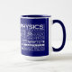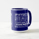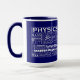 Física Mug. Com as seguintes palavras no verso - Física, Aceleração, Massa, Partículas, Termodinâmica, gravidade, assombro, big bang, buracos negros, eletromagnética, maxwell, mecânica quântica, cordas, radiação, tesla, força, e=mc2, gás, átomo, próton, nuclear, hertz, radiação, gama, absoluto, nanotecnologia, órbita, frequência, peso