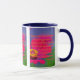 Esta caneca de dois tons mostra um design que apresenta uma fonte impressão Oliva com letras cor-de-rosa contorno amarelo com o verso da bíblia "Amos 5:6" do KJV sobre uma imagem que mostra uma bela flor rosa e amarela em frente a um fundo cor vibrante neste tema baseado na fé. Este verso está referindo o capítulo do Livro de 5 Amos mostrando o verso 6 neste tema de citação de escrituras bíblias da bíblia Rei James. A jante e o manípulo são vidrados em cores compatíveis, disponíveis em micro-ondas e máquinas de lavar louça de tamanho 11 onças ou 15 onças, construindo cerâmica segura.