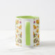 Branco e limão 11 oz. a caneca combinada com uma imagem de pintinhos amarelos descendentes, ovos cor-de-rosa em ninhos verdes e flores bonito rosa, azuis, roxas e amarelas. Ver placa de papel correspondente e azulejo de cerâmica quadrada. Veja toda a coleção de Páscoas Mug na categoria HOME na seção HOLIDAYS.