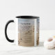 Esta caneca mostra o poema das pegadas sobre pegadas no fundo da pintura de areia na praia. A jante e o manípulo são vidrados em cores compatíveis, disponíveis em micro-ondas e máquinas de lavar louça de tamanho 11 onças ou 15 onças, construindo cerâmica segura.