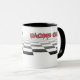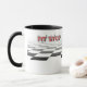 Pit Stop Racing Crew Mug - as cores são branca, preta, vermelha e cinza.