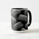Este design apresenta uma pilha de pneus pretos para automóveis.