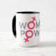 Esta trabalho de arte apresenta o símbolo de gênero feminino e a frase Poder feminino.
