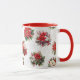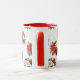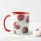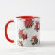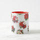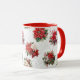 Padrão floral de férias elegante e chic, sem costura, com buquês de poinsettias vermelhas e brancas, colly e pinheiro numa cinza sutil e cor damasco branca.