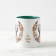 Uma bonito coroa de outono em tons de cinamão castanho, bronzeado e creme rodeia a imagem aquarela de um lindo cachorro pintor inglês. A imagem é impressa duas vezes na caneca, com seu texto personalizado entre eles.