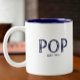 design de caneca de café pop com ano estabelecido com fonte azul estampada sobre fundo branco. Clique em personalizar para editar a cor de fundo!. Visite o nosso compro para ver esta caneca numa grande variedade de nomes de avô.