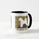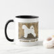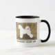 Três tons naturais da terra compo esta caneca portuguesa impressionante do cão de água. A silhueta do Cao de água Portugues é no centro, com ângulos radicais no fundo. Está abaixo o nome da raça. Refrigere presentes portugueses do cão de água para amantes do portie.