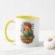 This combo mug features a cheerful illustration of a colorful parrot with closed eyes and a floral crown, surrounded by playful butterflies, hearts, clouds and sparkles. The bold “POSITIVE VIBES” lettering adds an uplifting message that makes the design feel warm, optimistic and full of joy. The contrasting interior color of the combo mug enhances the vibrant artwork, creating a fun, modern piece perfect for morning motivation, cozy breaks or as a happy, feel‑good gift.