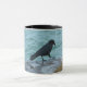 Corvo sendo um passarinho de praia numa caneca de verão.