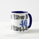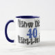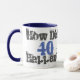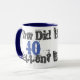 Presente de aniversário de 40 anos. Quarenta anos. Como Aconteceu 40? é a mensagem gráfica em negrito nesta caneca azul e branca.
