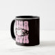 Mamãe vai adorar esta caneca adorável enquanto bebe seu café toda manhã. É o presente perfeito para o Dia de as mães. Esta caneca bonita para a mãe mostra um texto cor-de-rosa e sobredimensionado que diz "Mama Java" com uma pequena xícara de café a vapor, decorada com café e um fundo preto.