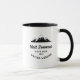 Presente legal para o seu Padrinho: Esta caneca elegante com um design moderno de cordilheira montanhosa rústica, seu nome personalizado e o ano do casamento, bem como os nomes do evento.