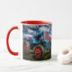 Caneca do presente do rancheiro do fazendeiro do vermelho azul de trator de fazenda