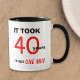 Esta caneca engraçada é perfeita para um presente de aniversário de 40 anos de marco. É feita especialmente para homens com palavras negras e vermelhas. A caneca diz: "Demorou 40 anos para conseguir uma caneca." Esta é uma ideia única de presente de tipografia para uma celebrante de aniversário de 40 anos com bom senso de humor. Palavras e Design protegidas pelo Copyright Kathy Henis 9-26-13