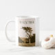 Caneca branca clássica que caracteriza a imagem do cobrir e umas citações da árvore preta