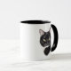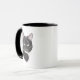 Caneca preto e branco do gato. O desenho de lápis colorido bonito de um gato preto e branco pôr em uma caneca!