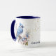 Esta bonito caneca personalizada apresenta uma bela imagem de um Blue Jay empolgado em um galho de árvore com bonito flores azuis e rosa. A imagem é impressa duas vezes na caneca, com seu nome ou outro texto entre eles. Há um pequeno confete de ouro para adicionar um pouco de brilho. Uma bonito cena de primavera!