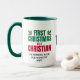 Na moda PRIMEIRO NATAL COMO UMA NOVA CAIXA DE Natal CRISTÃ, COM MONOGRAMA PERSONALIZÁVEL, TEXTO E DATA. A design mostra a tipografia serif verde-natalina e vermelho-natalino com elementos vermelhos e vermelhos holly. Uma caneca de monograma festiva de Natal excelente para enviar à sua família, amigos, vizinhos e colaboradores que são cristãos novos. É um presente de canto acolhedor para os novos crentes que celebram o seu primeiro Natal cristão. Presentes correspondentes disponíveis.
