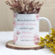 Mug com Flores de Água Rosa com Bíblia Versa Inspiracional - Provérbios 31:25 - Ela está vestida com força e dignidade e ri sem medo do futuro!