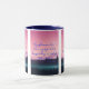 Esta caneca mostra o verso das escrituras da bíblia "Psalms 71:19" KJV em uma única letra impressão com letras roxas mais citação bíblia sobre uma imagem de uma vista ao lado da praia olhando sobre um lago sob um céu rosa vibrante neste verso e tema bíblico da versão Rei James. A jante e o manípulo são vidrados em cores compatíveis, disponíveis em micro-ondas e máquinas de lavar louça de tamanho 11 onças ou 15 onças, construindo cerâmica segura.