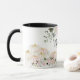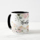 Passo animado A caneca de Ação de Graças retrata um elegante design floral de aquarela com abóboras brancas, cor-de-rosa e douradas, flores e verde. Ele apresenta uma simples saudação, "Obrigado."