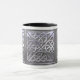 Três quadrados celtas de nó, cada um composto por 4 triângulos de nó celta. Tudo rendido em prata. Uma borda clara de preto completa o design.