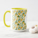 Um fundo bonito de grupos de limões, com um círculo central em branco com um pequeno contorno verde. Texto diz "Quando a vida te dá limões, aprende a fazer malabarismo"