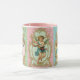 Uma caneca que caracteriza três querubins em cartouches bonitos. Muito bonito com muita cor.