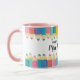 Um presente maravilhoso para o seu professor de escola primária favorito. Os lápis coloridos bordam a caneca de café junto com o nome dos professores personalizados na fonte moderna do roteiro.