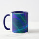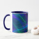 Raios de abstrato multicoloridos brilhantes sobre fundo azul escuro.