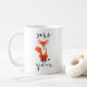 Caneca moderna e única com caligrafia moderna e ilustração de raposa. Esta caneca será perfeita como presente.