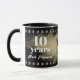 Fundo divertido e moderno, com pontos falsos de metal nesta caneca de café de aniversário do marco personalizada personalizada com a sua escolha de texto e esquema de cores, para reconhecer a longevidade, dedicação e excelente serviço, aditamentos perfeitos ao reconhecimento de funcionarios e aos esforços de noivado de trabalho.