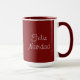 Deseje aos seus amigos Feliz Natal em espanhol com esta caneca Feliz Navidad. Colocado sobre fundo vermelho, há um design de cacto saguaro verde. A carta branca festiva pode ser personalizada através da sua própria mensagem, se assim o desejar. Excelente como presente ou para sua festa de férias. Aproveite!