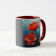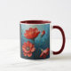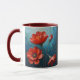 Aproveite uma xícara de café com esta adorável design de caneca floral. Criação de arte Zenya Zenyaris em colaboração com AI - 2025. Flores vermelhas Joy Café design.
