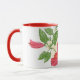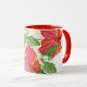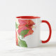 Esta caneca de dois tons tem um design de hibisco tropical fora, e um dentro vermelho complementar.