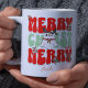 Imagem de tipografia de ranhura retrorativa personalizável caneca de café. A design apresenta o texto "Feliz Natal" em tipografia de groovy vermelha e verde com elementos temáticos kawai como meias de Natal, papais noeis coloridos e estrelas. O nome pode ser facilmente personalizado. Faz o melhor presente personalizado para você, seus amigos, familiares e até mesmo vizinhos. Temos mais de 45 designs de Natal em temas retrorados, aquarela e tipografia engraçada em nossa coleção que vocês definitivamente amarão. Feliz Natal!